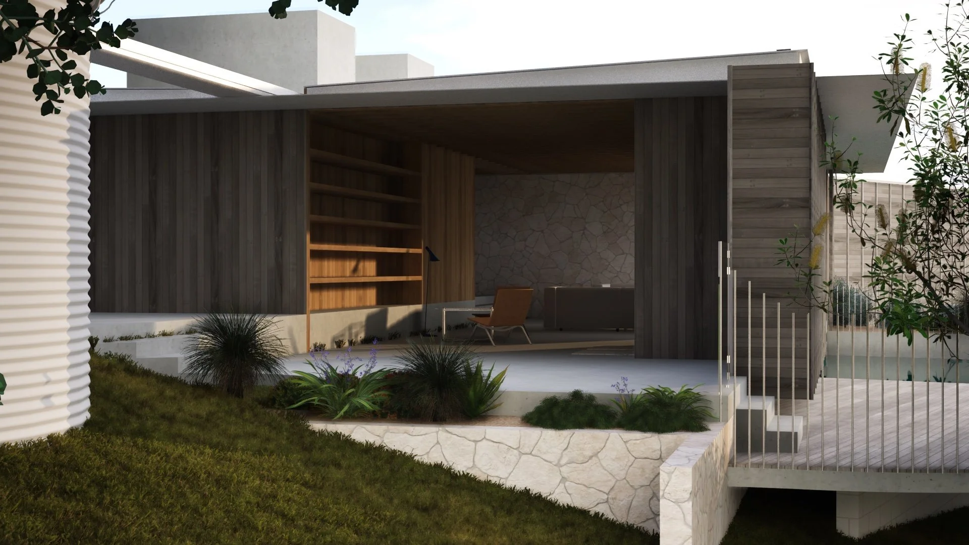 Outdoor spaces are treated as extensions of the interior rather than residual zones. Terraces, courtyards and planted edges blur the boundary between inside and out, creating a sequence of sheltered and open conditions that encourage movement through the house and landscape alike. In this way, the architecture remains secondary to its setting — shaped by the site, responsive to climate, and quietly embedded within its bushland context.